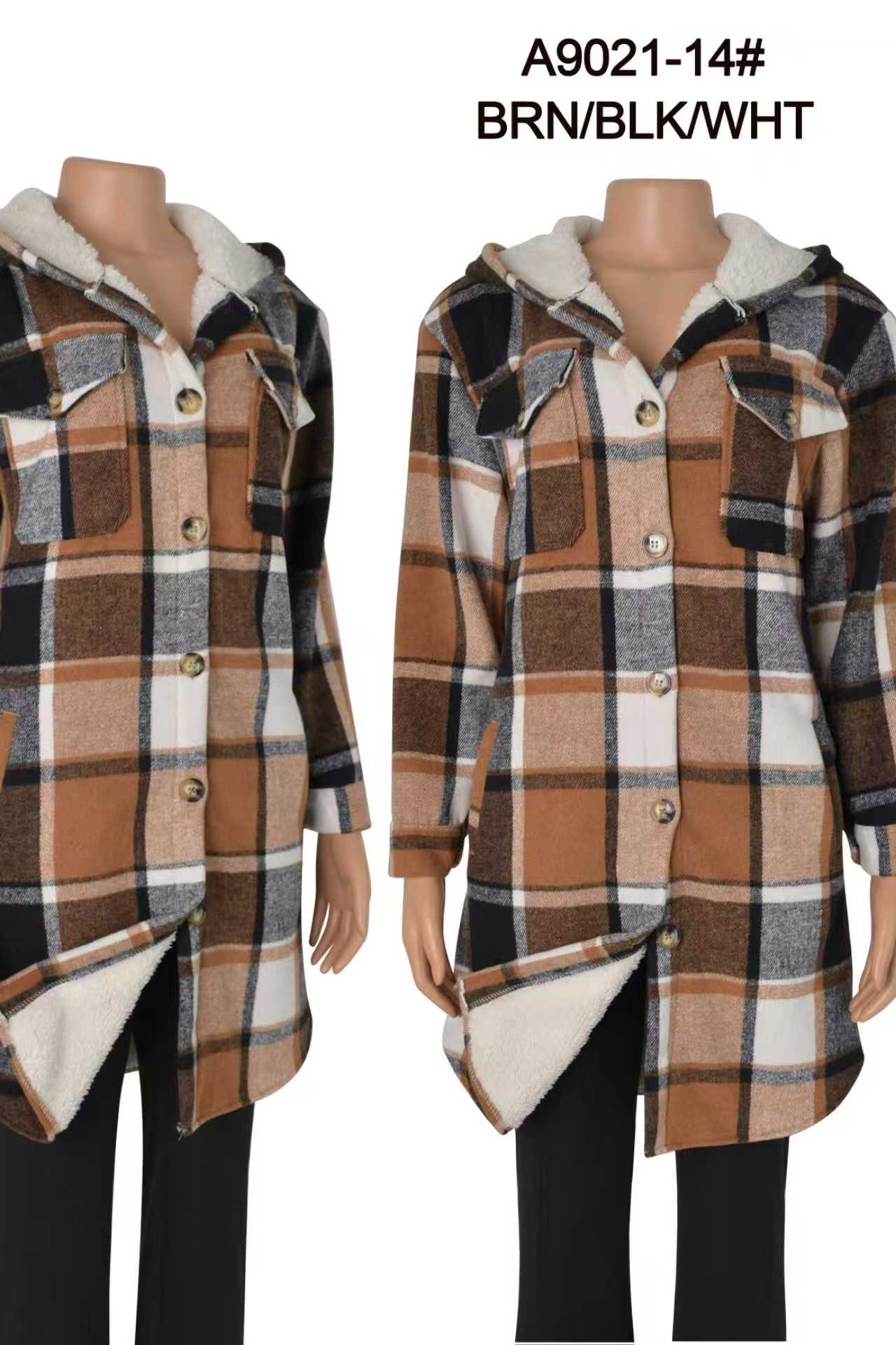 A8804 Plaid Teddy Lined Hooded Coat 12pc