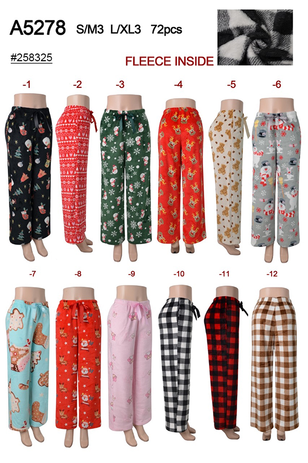 A5278 FLEECE PAJAMA PANTS MIX SIZE 12PCS