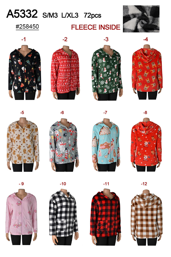 A5332 FLEECE PAJAMA TOPS MIX SIZE 12PCS